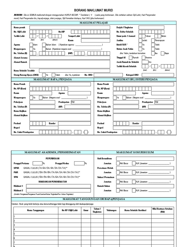 Borang Sistem Maklumat Murid Terkini Cuitan Dokter Otosection